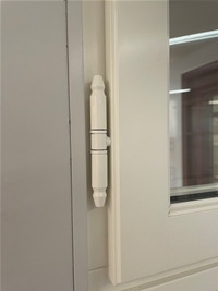 Som tillval på våra standardgångjärn till våra inåtgående fönster och fönsterdörrar kan man beställa gångjärns sprinten med allmogeknopp (3840A), allmogesprinten (sprinten på bultgångjärnet)
