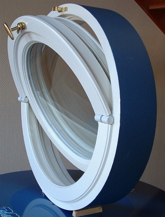 Som runt öppningsbart fönster så kan vi erbjuda vårat egna konstruerade "pivåhängda" fönster som svänger runt på sin egna axel för att kunna öppnas i en nisch, vanliga sidohängda eller underkantshända runda fönster måste placeras i liv med den invändiga väggen för 100% funktion vilket ofta inte är möjligt. Vi har egenutvecklat det smäckra gångjärnet själva för att få ett vackert och inte klumpigt runt fönster. Läs mer om